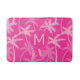 Ce tapis de bain moderne et tendance présente un design de palmiers tropicaux dans les tons roses chauds, magenta et fuchsia. Personnalisez la typographie de script avec votre nom ou monogramme.