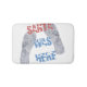 Père Noël Was Here texte rose et bleu et deux pieds dans les pieds dans la neige fraîche. Imprimantes de Noël amusantes, cadeaux et t-shirts pour le plaisir, l'humour et la bonne humeur