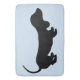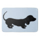 Jolie petite silhouette dachshund avec tapis de bain bleu arrière - plan. Idéal pour les amoureux de les chiens vierges.