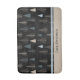 Personnalisez-vous avec un nom ou un autre texte et ajoutez à votre salle de bain à thème rustique ce tapis de bain imprimé avec un motif de formes primitives de pins. Créé dans les tons de terre de tan, bleu clair gris et ardoise foncée gris sur un noir arrière - plan et des accents de bordure tan. Voir le rideau de douche et d'autres éléments de coordination dans cette collection design sur Zazzle.