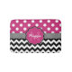 Matelas de bain mignon, girly, tendance avec motif pois rose et blanc, motif en zigzag en chevron noir et blanc, bordure rayée avec cadre étiquette floral pour votre monogramme et nom personnalisés.