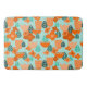 Ce tapis de bain a un design scandinave de fleurs et de feuilles dans différentes nuances d'orange et turquoise.
