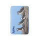 Des macareux se reposent sur les rochers. Le texte personnalisable "Puffins" apparaît également. Le Puffin Atlantique (Fratercula arctica) se nourrit principalement de plongée dans l'eau. Ils se reproduisent dans de grandes colonies sur des falaises côtières ou des îles au large de l'Atlantique Nord. Après la saison de reproduction, les macareux versent les parties extérieures colorées de leur bec, laissant un bec plus petit et plus pâle. Leurs ailes courtes sont adaptées pour nager avec une technique de vol sous l'eau. En l'air, ils battent rapidement leurs ailes (jusqu'à 400 fois par minute) en vol rapide, volant souvent au-dessus de la surface de l'océan.