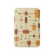 Ce design moderne d'inspiration atomique du milieu du siècle présente des lignes audacieuses et des formes géométriques dans les tons orange et jaune
