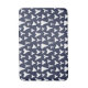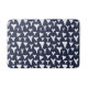 Tapis bleu marine imprimé avec un motif de différentes dents de requin blanc. Idéal pour votre décor de salle de bains à thème nautique ou côtier.