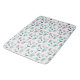 Un motif super mignon avec un thème de camping avec caravanes rétro, tentes, transats, parasols et tables de pique-nique dans les tons bleu turquoise, rose et blanc,