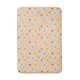 Retro geometric pattern with teal, orange, and black star-shaped diamonds on a peach background. The design conveys a playful, vintage feel.