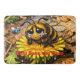 A bath mat featuring a caricature of a sad bee and the words Help Save the Bees.
