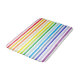 Des bandes de toutes les couleurs d'un arc-en-ciel comprenant rose, rouge, or, orange, écru, jaune, vert citron, vert, bleu pastel, turquoise, gris bleu, indigo, lavande, violet et blanc.