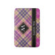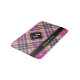 Design rose, jaune doré et écossais bleu. Motif sans couture. Texte et monogramme personnalisés.