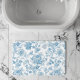Refresh your bathroom decor with our new bath mat, featuring an elegant Toile-de-Jouy Chinoiseries blue floral pattern beautifully framed on a custom white background.