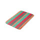 Photo d'une section d'une serviette de plage rayée orange, turquoise, noire et rouge imprimée sur les bords du matelas.