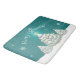 Ajoutez une touche de vacances à votre bain grâce à cette Turquoise salle de bain Snowy Tree Bath Mat. Le design du tapis de bain comprend un trio d'arbres de Noël recouverts de neige contre un arrière - plan turquoise et des flocons de neige tombants. Autres cadeaux et objets de vacances disponibles avec ce design aussi.