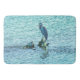 Photo minimaliste d'un héron perché sur un arbre qui n'a pas complètement submergé sous l'eau. La surface de l'eau est perturbée par le vent et les ondulations créent un fond bleu texturé. Copyright ©2018 Kimberly J Tilley.