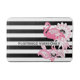 Le design du produit est composé d'un flamant avec des motifs cachemire kaléidoscopiques dans les tons rose sur le noir et blanc rayures arrière - plan. Ce design d'oiseau tropical avec texte personnalisé fait un tapis de bain moderne et unique.