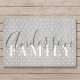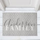 Tapis de sol sur mesure avec monogramme/nom de famille personnalisé en calligraphie manuscrite moderne imprimé sur un fond rustique à pois de style ferme.