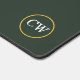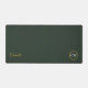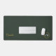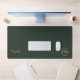 Un Tapis de bureau élégant sur fond vert forêt avec un prénom couleur or et des lettres monogrammes : une belle idée de décoration pour le bureau ou la maison si vous travaillez à la maison !
