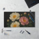 Ajoutez une élégance intemporelle à votre espace de travail avec ce tapis de bureau en fleur de pivoine, avec deux fleurs blanches et une fleur rose en détail, entourée de feuilles verdoyants et de bourgeons délicats. L'arrière - plan foncé améliore les couleurs vives et les textures complexes, faisant ressortir chaque pétale et chaque feuille. Parfait pour les amateurs de fleurs, les artistes et tous ceux qui apprécient la beauté botanique raffinée dans leur environnement quotidien.