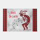 Personnalisez ce "One of a Kind" unique mat de Noël Kokopelli rouge et noir ! Il comprend un Kokopelli jouant la Flûte avec des notes musicales et dansant sur un Arrière - plan de Noël blanc avec des flocons de neige, entouré d'une frontière rouge et noire et des mots ondulants... "Paix sur terre"! Design D'Art Original Par L'Artiste Kerry Miller.