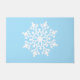 Tapis de Noël de couleur bleu clair avec un imprimé festif de flocon de neige. Couleur Bleu & Blanc Customiser ce tapis ou acheter tel quel.