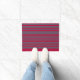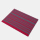 Tapis de porte rouge rayé gris.