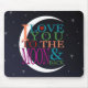 Expression colorée, "Aimez-vous à la lune et au retour" avec les étoiles nocturnes et le ciel derrière une lune partielle. Conçu par Simply Put by Robin; certains éléments par l'adhésion à Graphics Factory