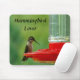 Mousepad avec un portrait d'un colibri rubis-throated femelle se reposant sur un conducteur rouge. Grand cadeau pour un amant d'oiseau ! Photo numérique par Sue Melvin