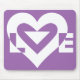 Un logo graphique, fait sur mesure. AMOUR en blanc sur violet.