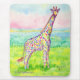 Annabelle, une girafe très colorée, pose sur un mousepad dans son habitat naturel.