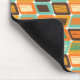 Ce tapis de souris a un design moderne du milieu du siècle de rectangles arrondis penchés sur le côté avec des rectangles inclinés à l'intérieur faits de lignes toutes dans les couleurs des années 70.