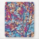Un design artistique abstrait d'un petit arbre boisé aux couleurs blues, rouges et marron.
