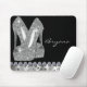 Tapis de souris argenté fascinant de chaussures de talons hauts de parties scintillantes. Ajoutez le texte ou laissez le blanc.
