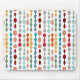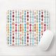 Ce tapis de souris a un design moderne du milieu du siècle de cercles et ovales enfilés dans des couleurs rétro, entrecoupés sur un champ de blanc.