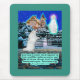 Belle Eskie et Angel Scripture Pad d'une scène hivernale colorée et détaillée avec un chien d'Esquimau blanc-américain, souillé et sans abri, perdu dans une tempête de neige. Le chien est à genoux et prie avec des pattes ensemble à un Être céleste angélique glorieux. Elle a une belle aura violette et blanche autour de la tête et est à l'entrée d'une maison de charme. Elle a ouvert la porte de fer pour le chien perdu et accueille le chien à travers la porte avec des mains tendues. Elle a sanctifié cette maison comme la nouvelle maison du chien en l'enveloppant de mousseux bleus du Ciel. Cette scène accompagne le verset biblique Matthieu 6:33, "Mais cherchez d'abord le royaume de Dieu, et Sa justice; et toutes ces choses vous seront ajoutées." Cette Mouse Pad fait un merveilleux cadeau ou peut être utilisé pour nous rappeler la Parole de Dieu.