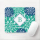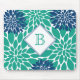 Tapis De Souris Bleu et vert fleurs modernes Monogramme initial