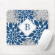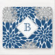 Tapis De Souris Bleu Gris Moderne Fleurs Initiales Monogramme Sour