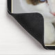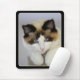 Chaton aigu bleu bicolore de Ragdoll sur un tapis de souris noir d'arrière - plan.