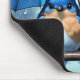 Paire d'oiseaux bleus sous un parapluie bleu dans une tempête de pluie