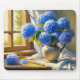 Bouquet de fleurs d'hydrangée bleue sur dentelle de style Monet