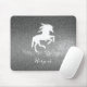 Ajoutez une touche élégante à l'espace de travail de votre ordinateur avec un bloc-souris personnalisé Silver Parties scintillant Unicorn. La conception du pavé de souris comporte une licorne marchant un sentier étoilé contre un arrière - plan de parties scintillant. Autres articles disponibles avec cette conception aussi.