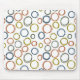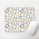 Ce pavé de souris a un design Boho de cercles se chevauchant sur des nuances rétro de vert, marron, bleu et gris.
