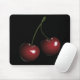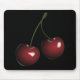 Une paire de cerises rouges, juteuses, délicieuses sur un arrière - plan de noir mat.