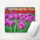 Un champ des tulipes vibrantes et colorées de rose, de rouge, noires et jaunes au printemps.
