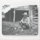 Chat mangeant hors d'une boîte de café avec un cowboy observant sur le ranch de fourche près de Meeteetse, Wyoming.