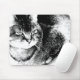 Une mousepad avec une photo en noir et blanc d'un chat mi-birman en gros plan.