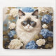 Tapis De Souris Chat Ragdoll Avec Fleurs Bleues D'Hydrangée
