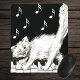 Cette image vintage en noir et blanc présente un chat en train de danser sur les touches d'un piano. L'arrière - plan est noir avec des notes musicales blanches. Voir mon magasin Art by MAR pour apparier les produits avec ce design.
