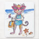 Il s'agit d'une peinture médiatique mixte d'un chat lunettes de soleil sur la plage.