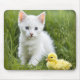 Cute chaton blanc dans l'herbe verte avec canard de printemps jaune.