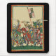 Illustration tirée du manuscrit médiéval du Codex Manesse du XIVe siècle. Chevaliers qui se chargent dans la bataille. Un grand cadeau pour quelqu'un qui s'intéresse à l'histoire et à l'art du moyen-âge.